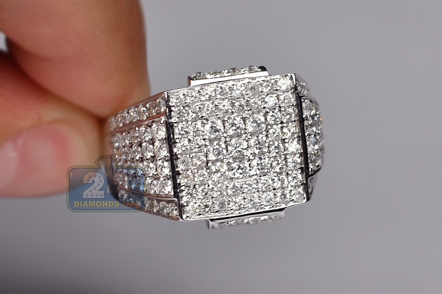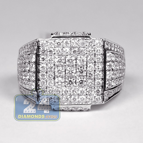 Be always in style with such a masculine diamond ring designed for a self-confident man! Classic forms, genuine materials and the highest level of craftsmanship make this jewelry piece stand out from others! It is professionally produced from cool 14k white gold with high polished finish, and expertly set with icy white round-cut diamonds totaling 2.80 carats. You will look like a million dollars wearing this ring!
