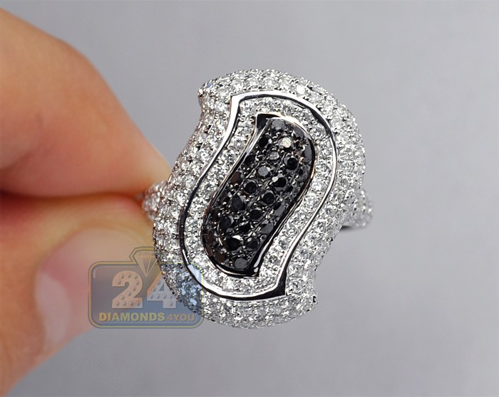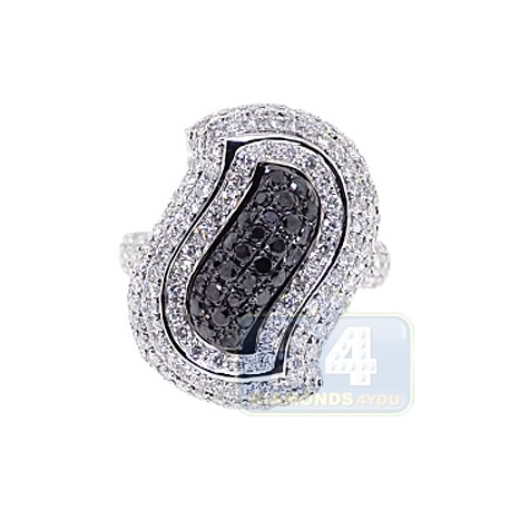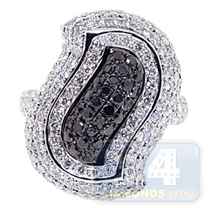 Intriguing with drama and sparkle, our fancy leaf shaped two tone ring is totally tempting! Inspired by Mother Nature and beautifully crafted by human in shiny polished 14k white gold, the jewel is skillfully amazed with genuine black and white round cut diamonds totaling 2.81 carat. White brilliants are hand picked to match with SI1-SI2 clarity and G-H color for the gleaming and eye clean look. What a stunning piece to join your collection of jewelry!