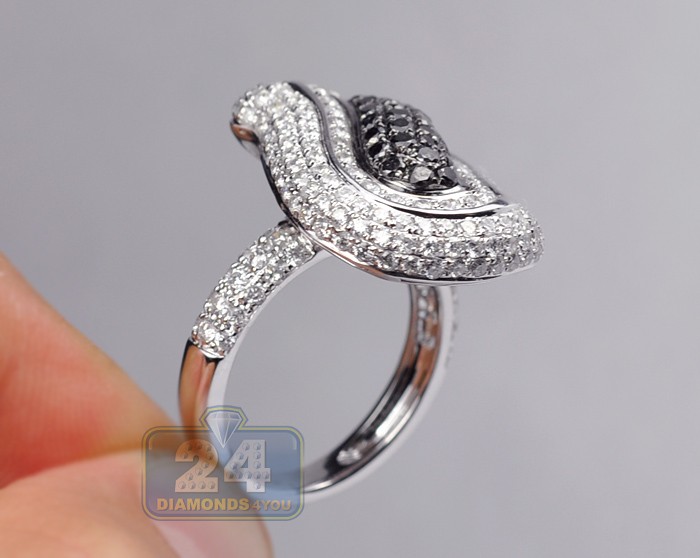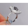 14K White Gold 2.81 ct Black Diamond Womens Leaf Ring