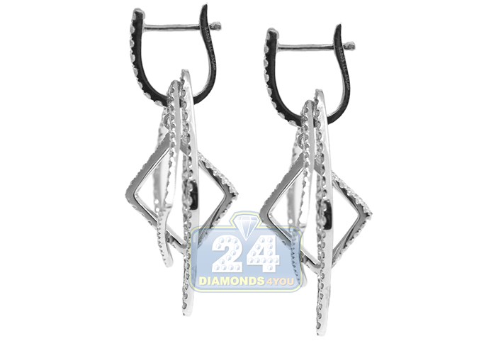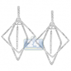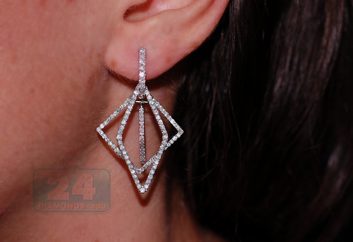 14K White Gold 2.84 ct Diamond Rhombus Womens Dangle Earrings