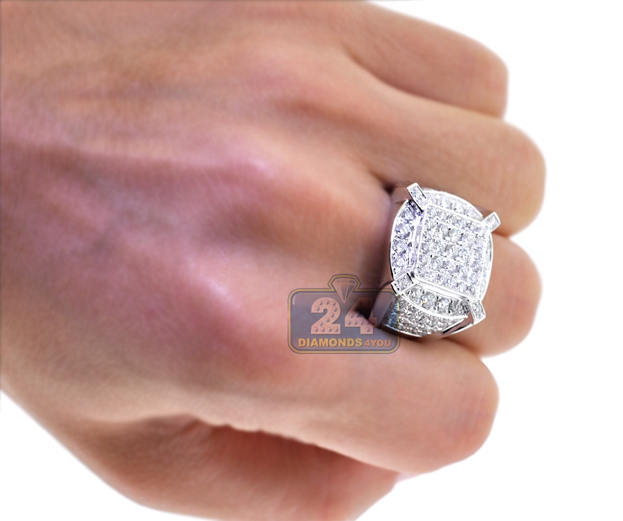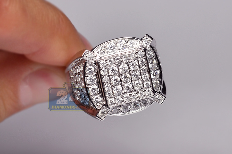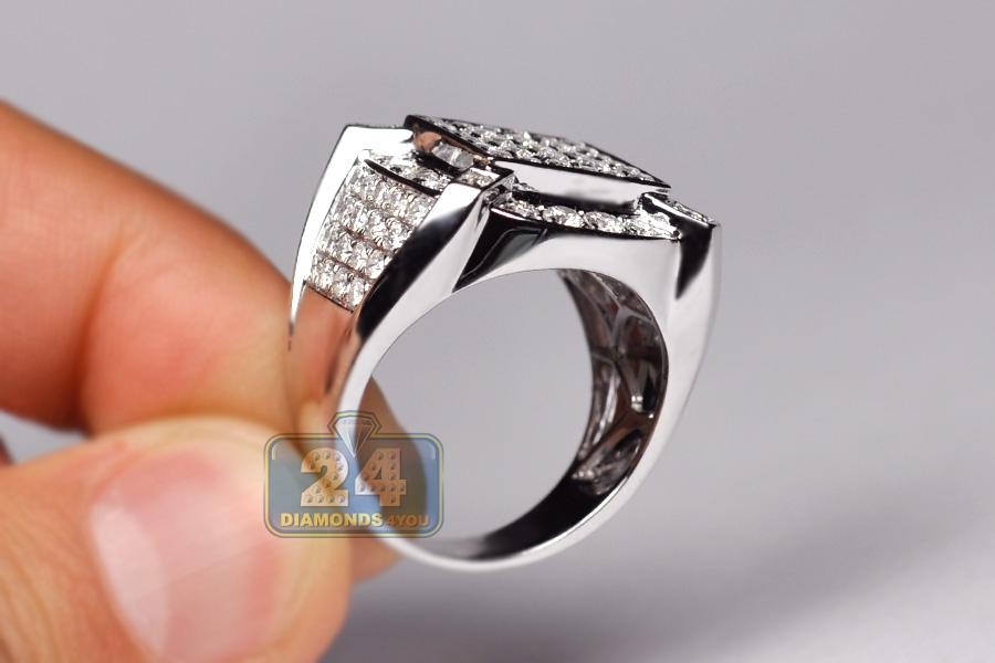 14K White Gold 2.85 ct Diamond Mens Multishaped Ring