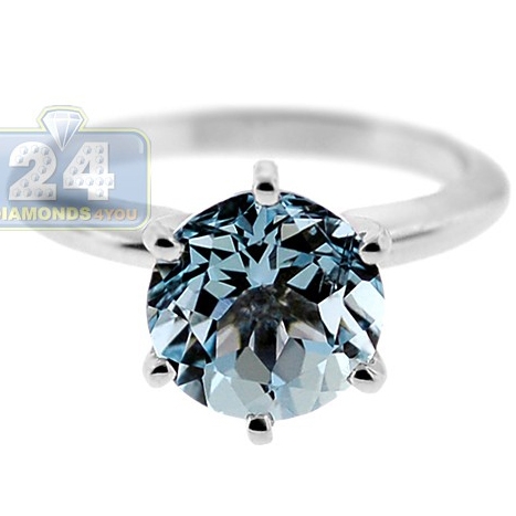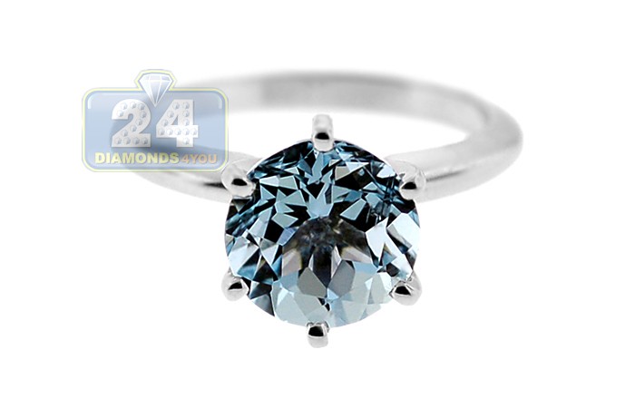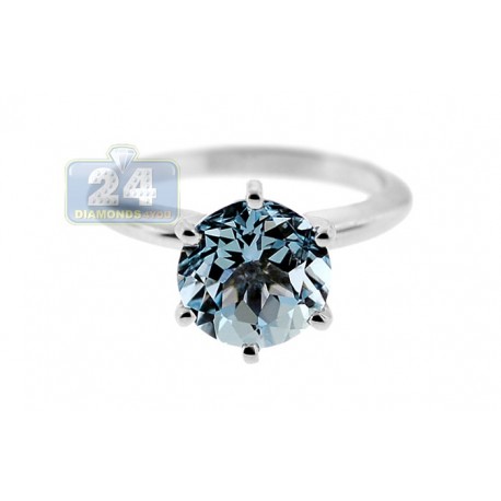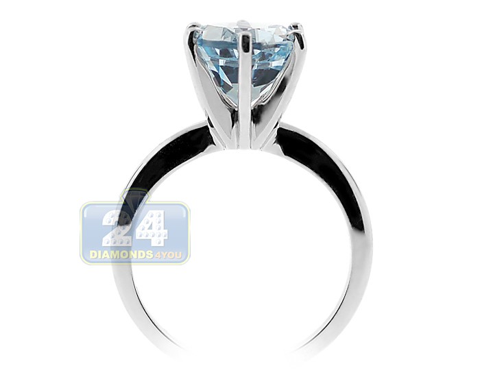 14K White Gold 2.86 ct Aquamarine Solitaire Engagement Ring