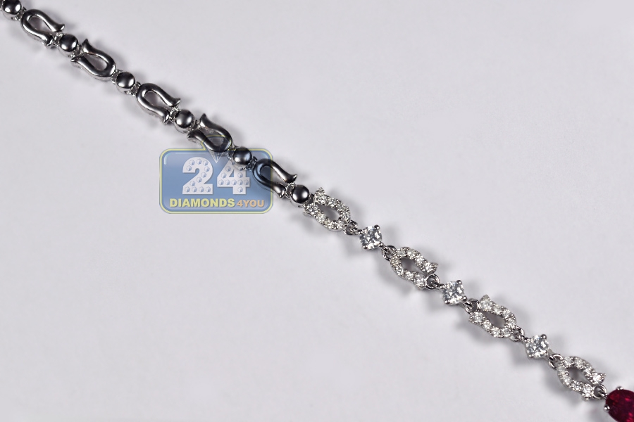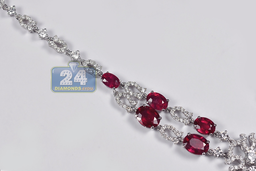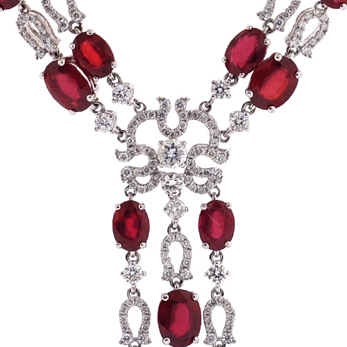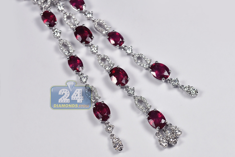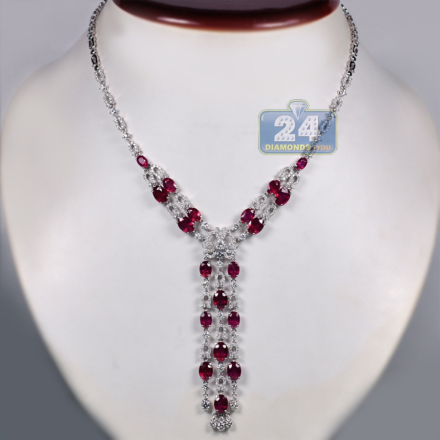 14K White Gold 29.02 ct Ruby Diamond Y Shape Necklace
