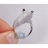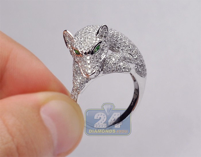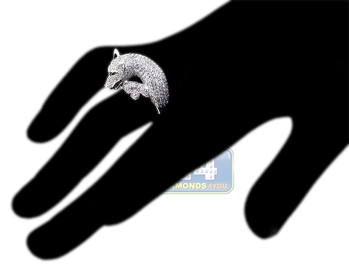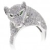 14K White Gold 2.97 ct Diamond Emerald Panther Cat Head Ring