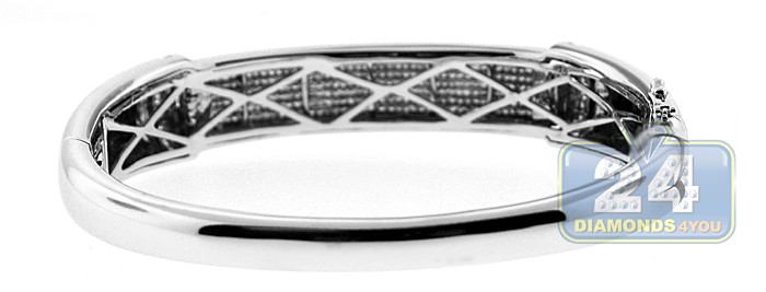 14K White Gold 3.00 ct Princess Diamond Oval Bangle Bracelet