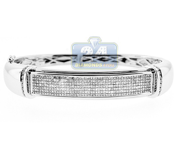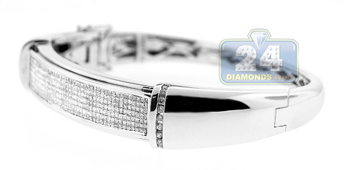 This gorgeous diamond bangle bracelet is perfect for any formal or informal occasion. It's masterly created from gleaming 14 karat white gold with highly polished smooth finish. Our women's oval bangle is amazed with icy white princess-cut (2.70 carats) and round brilliant-cut (0.30 carat) natural diamonds. It has length of 7 inches and width of 11 mm. Enjoy such a stylish jewelry piece on your wrist!