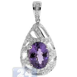 If you're a fan of precious stones, this purple amethyst diamond pendant is for you! It's lovely made of lustrous 14 karat white gold with precisely polished smooth finish. The teardrop pendant has natural purple oval-cut amethyst (3.01 carats) in the center and icy white round-cut diamonds (0.32 carat) around. Our women's gemstone pendant measures 29 mm in dangling length and 14 mm in width. The piece of jewelry is really bright with a bursting sense of excitement!