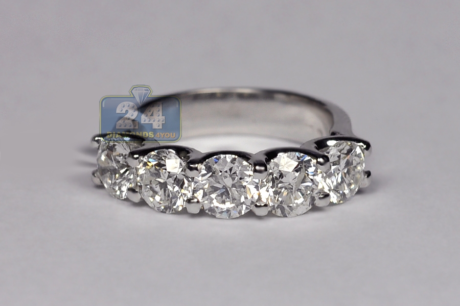 14K White Gold 3.36 ct Five Diamond Womens Anniversary Ring