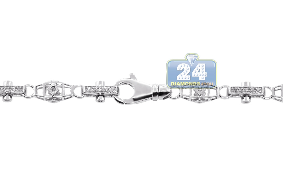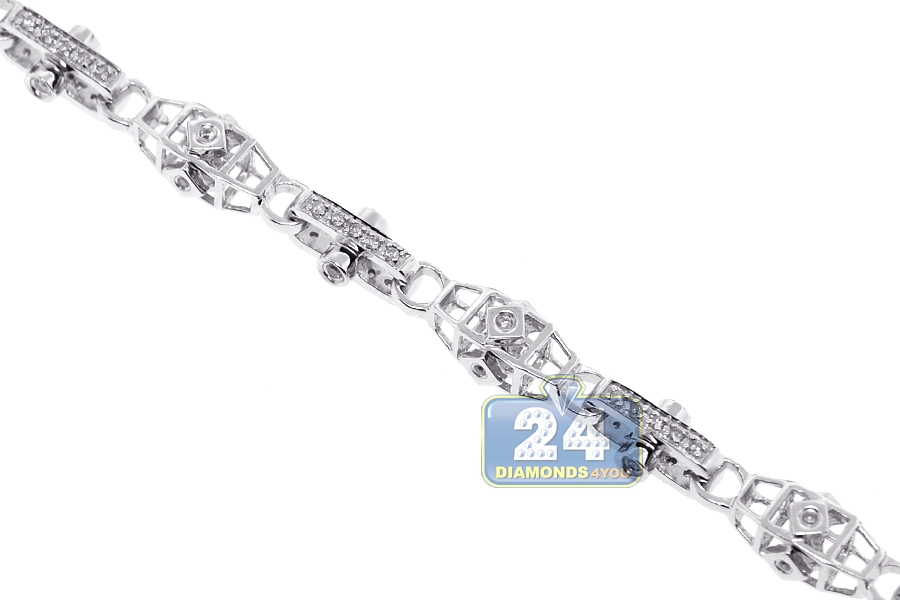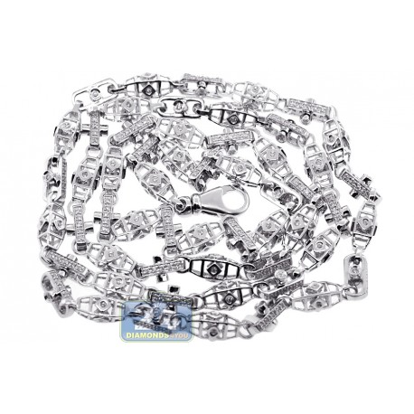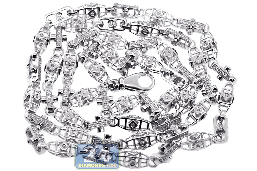 14K White Gold 3.43 ct Diamond Custom Rectangle Link Mens Chain