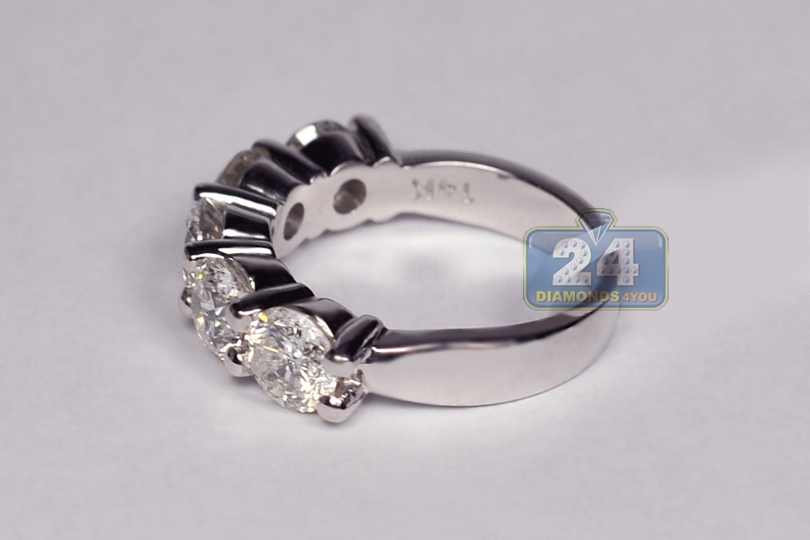 14K White Gold 3.44 ct Five Diamond Womens Anniversary Ring