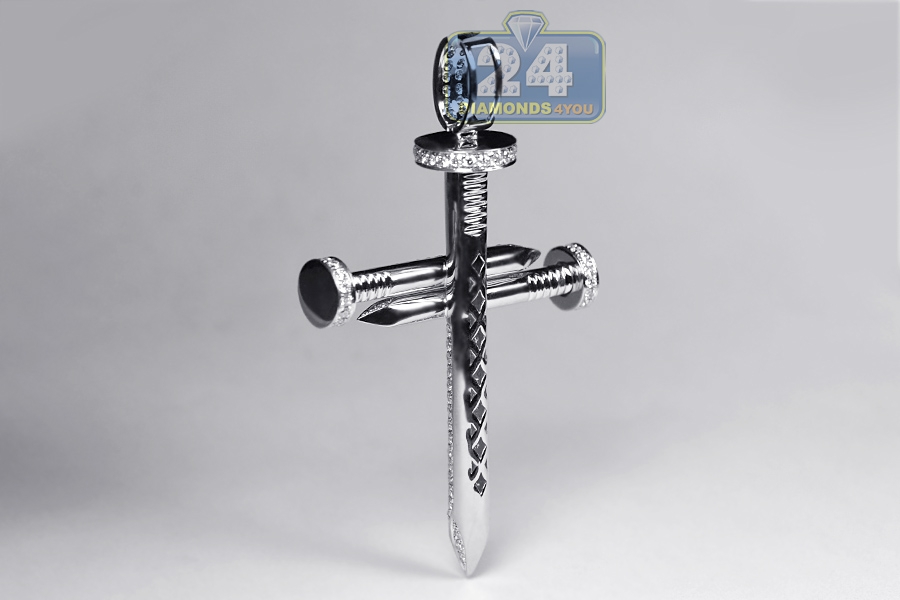 14K White Gold 3.50 ct Diamond Nail Cross Large Pendant