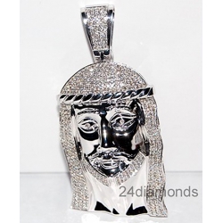 14K White Gold 3.69 ct Diamond Large Jesus Christ Pendant