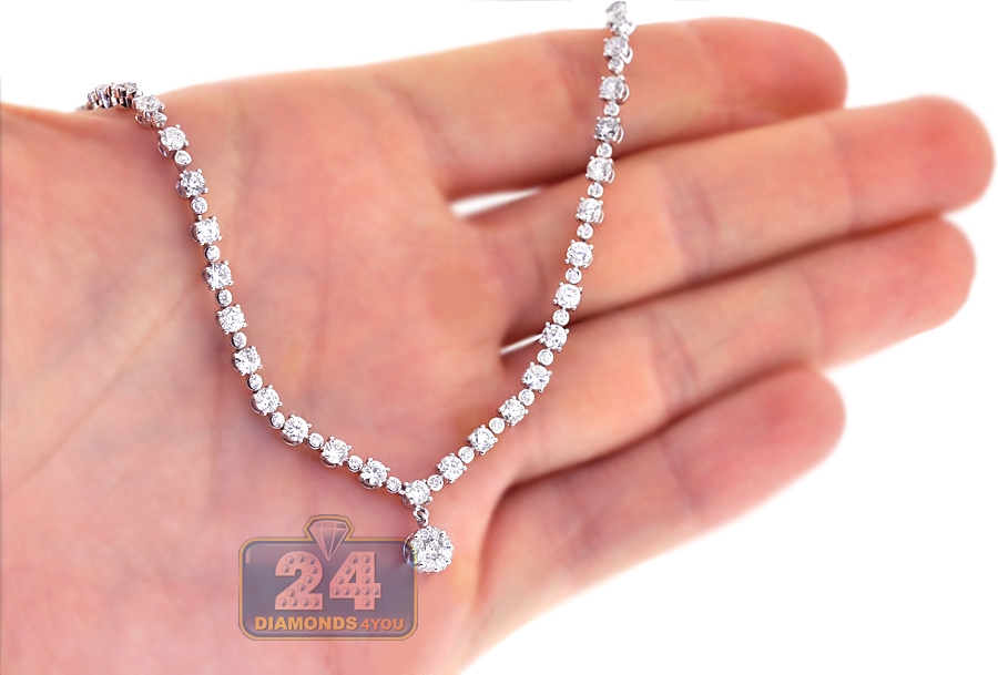 14K White Gold 3.94 ct Diamond Womens Drop Necklace 17 Inches