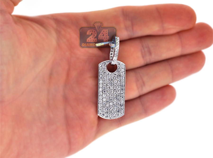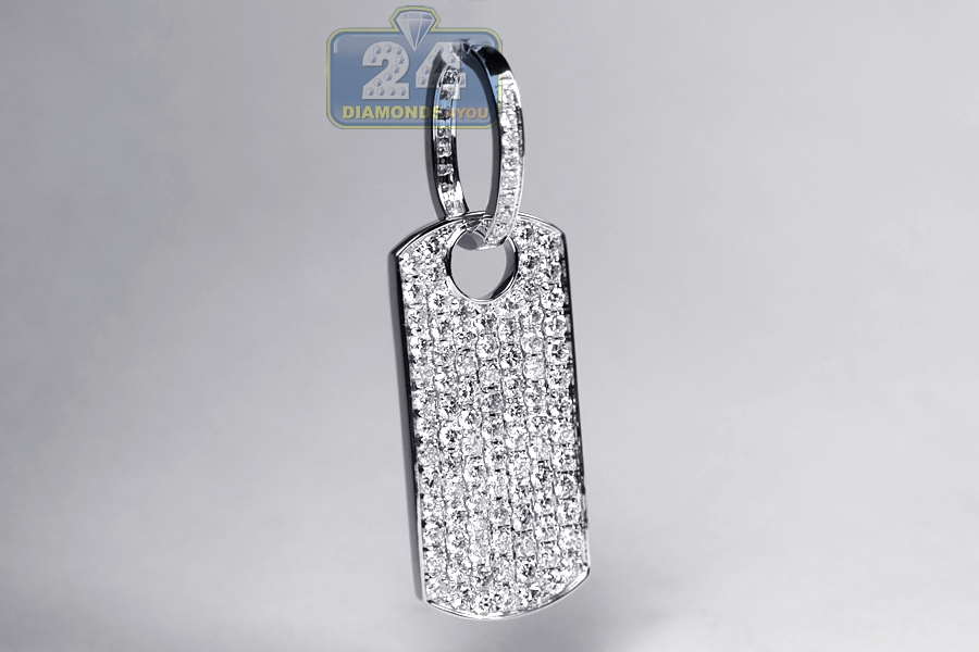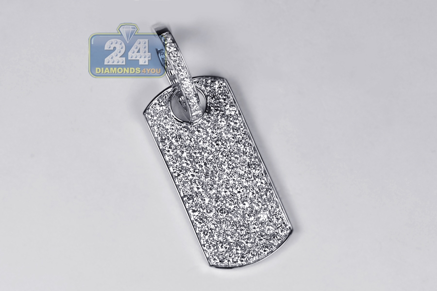 14K White Gold 3.96 ct Iced Out Diamond Dog Tag Pendant