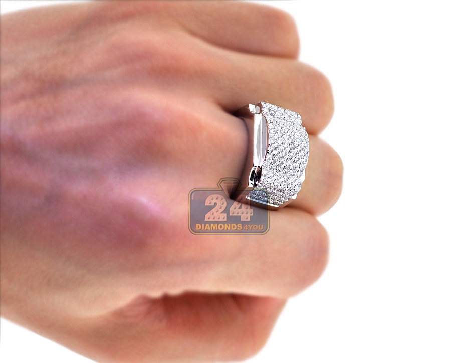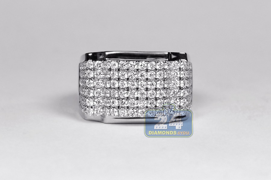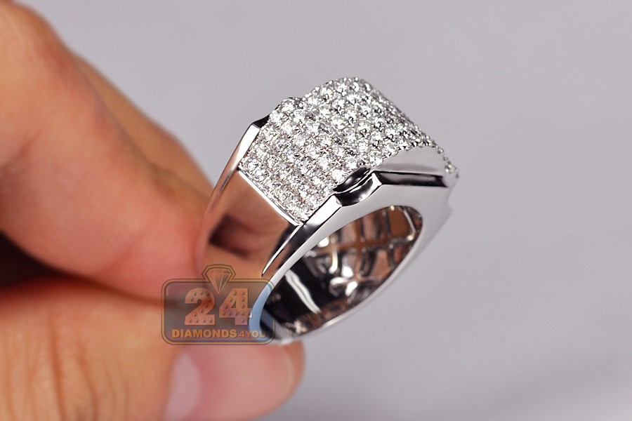 14K White Gold 3.00 ct Round Cut Diamond Mens Ring