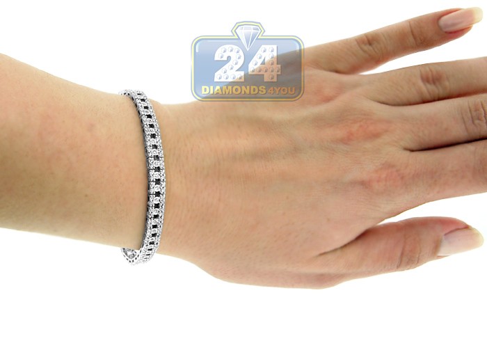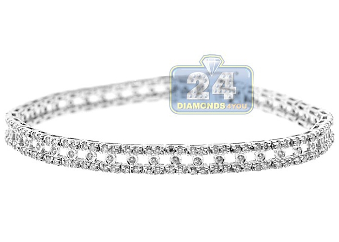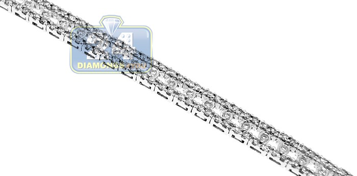 14K White Gold 3.00 ct Diamond Womens Fancy Tennis Bracelet