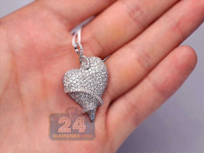 14K White Gold 3.01 ct Diamond Womens Wrapped Heart Pendant
