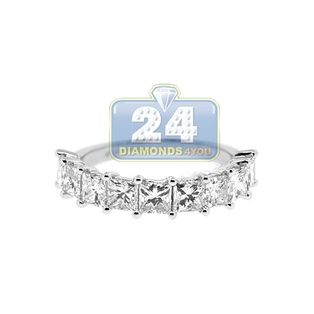 Look at this charming and luxurious anniversary ring! It is masterly made of lustrous 14k white gold with highly polished finish, and gorgeously encrusted with 9 pieces of princess cut diamonds totaling 3.03 carat. These stones are absolutely natural, eye clean and sparkling, with SI1-SI2 clarity and G-H color. Amaze your finger with such a symbolic jewelry piece!
