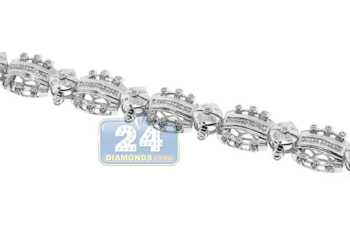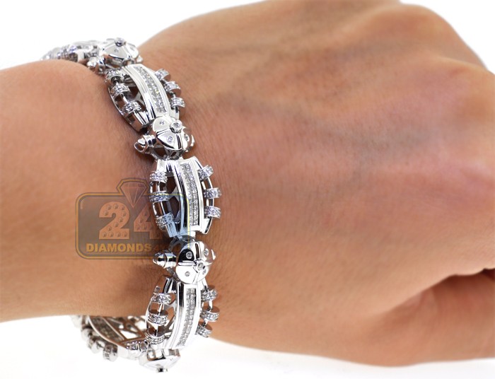 14K White Gold 3.13 ct Diamond Link Mens Bracelet 8 Inches