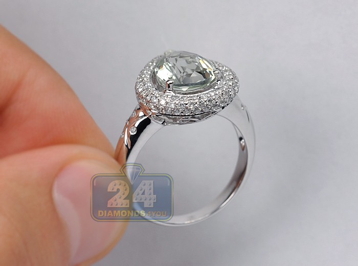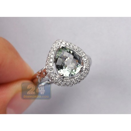 14K White Gold 3.13 ct Green Amethyst Diamond Cocktail Ring