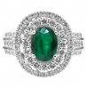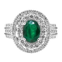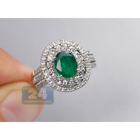 You may have just found the perfect gemstone ring with a heap of diamonds that you can wear every day and night! This jewelry piece is expertly handmade of lustrous 14k white gold with highly polished finish, and features a natural oval shaped green emerald of 2.00 carats in the center. The halo style sides and shank of the ring is gorgeously encrusted with 2.14 carat of icy white round cut diamonds. Amaze your finger with such a splendid jewel!