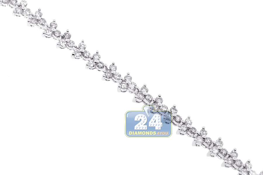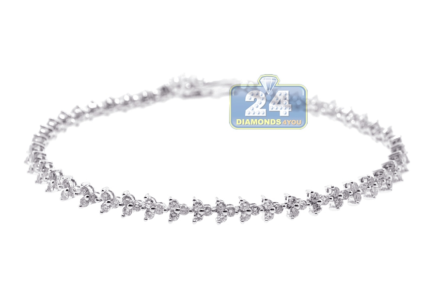 14K White Gold 3.20 ct Diamond Womens Flower Tennis Bracelet