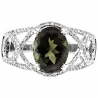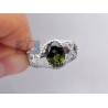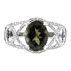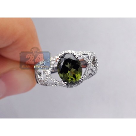 Our fascinating gemstone women's ring features a timeless openwork design masterly handmade of lustrous 14k white gold with highly polished finish. The ring is skillfully encrusted with a natural green oval cut tourmaline in the center as genuine white round cut diamonds on the band. This fabulous, contemporary chic combination of green tourmaline and white diamonds makes a sensational statement!