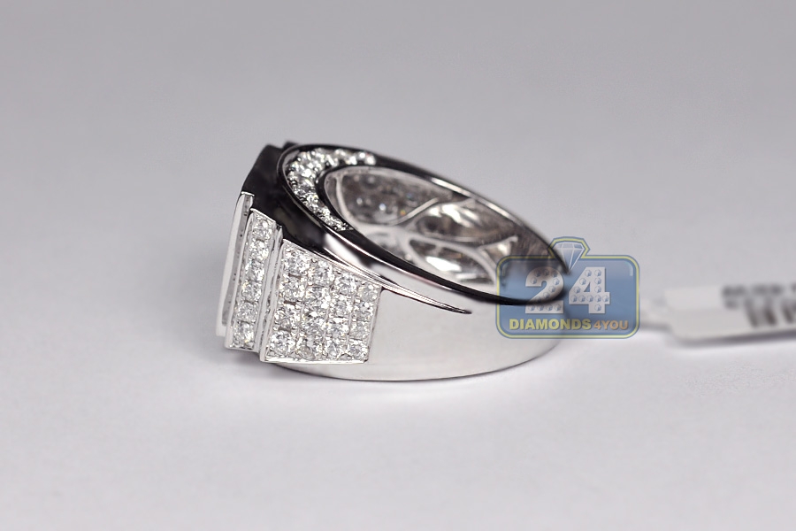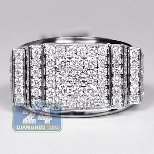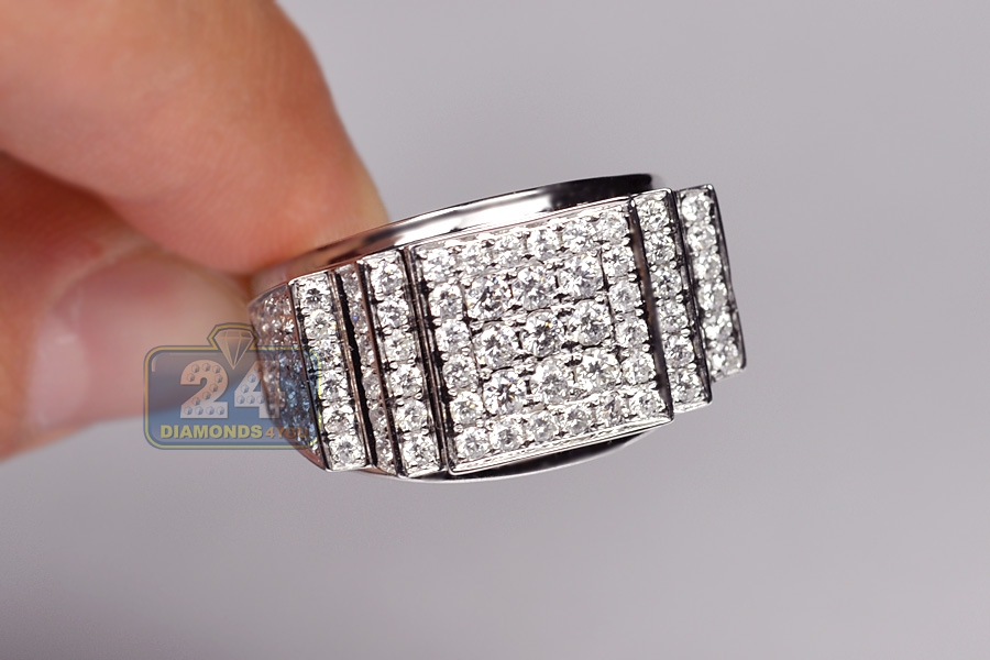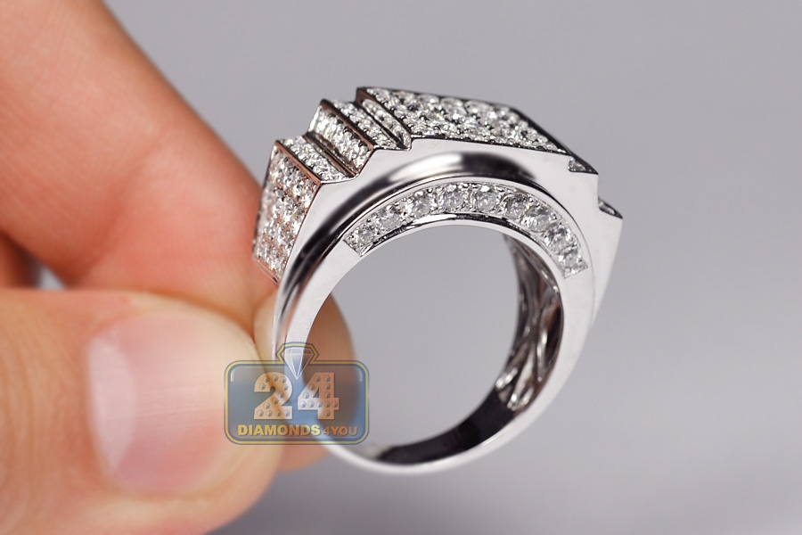 14K White Gold 3.23 ct Diamond Mens Step Design Ring