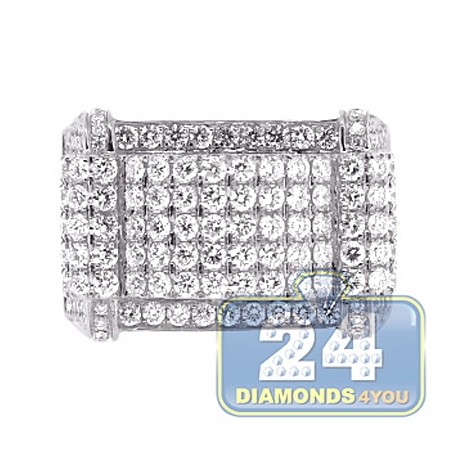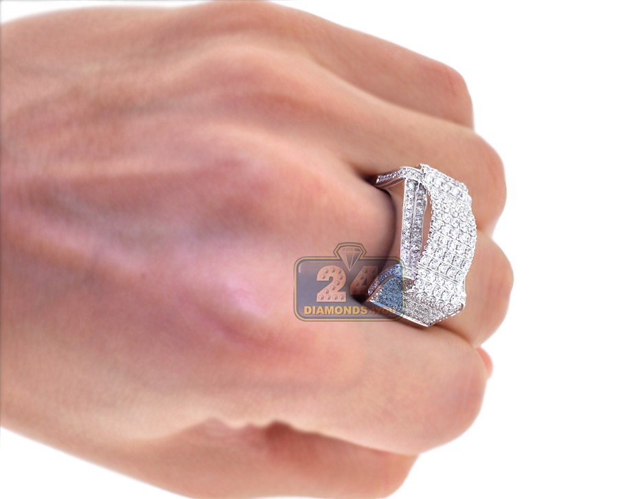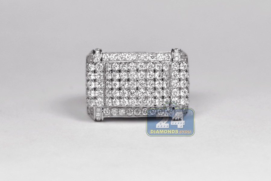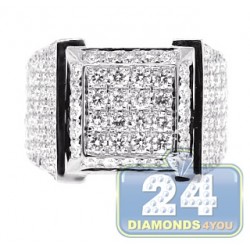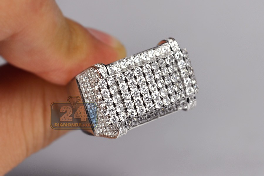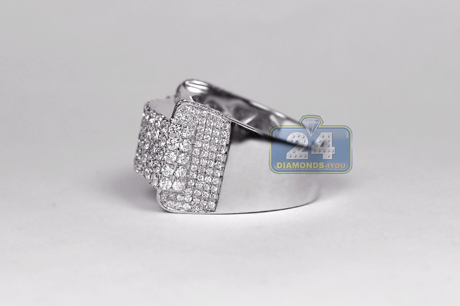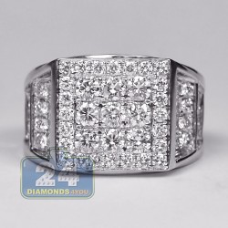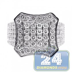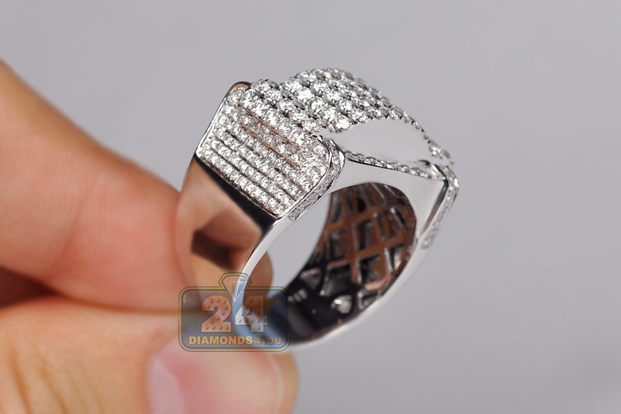 14K White Gold 3.23 ct Diamond Rectangular Shape Mens Ring