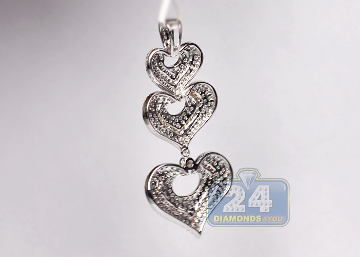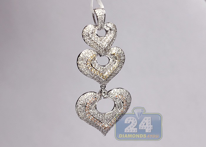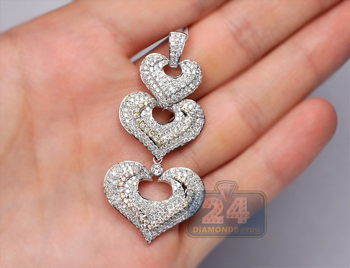 14K White Gold 3.25 ct Diamond Three Hearts Womens Pendant