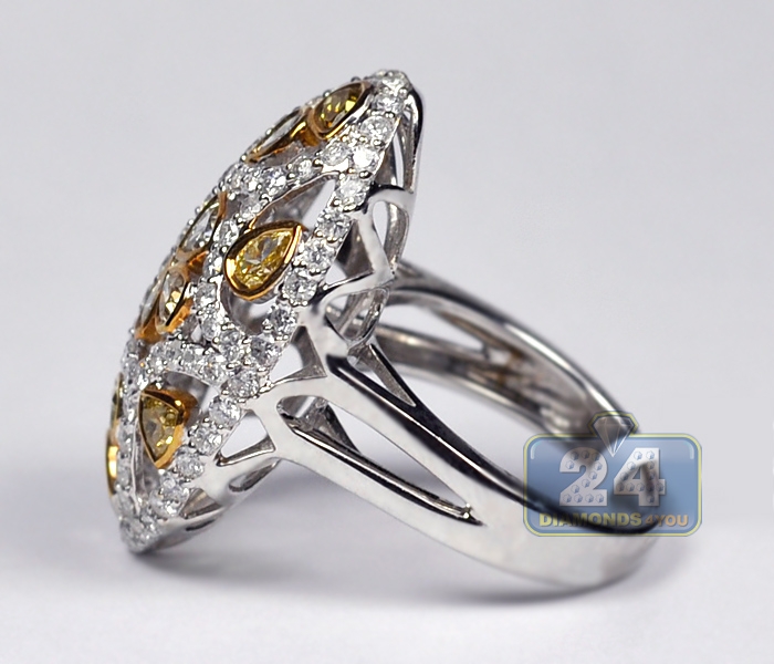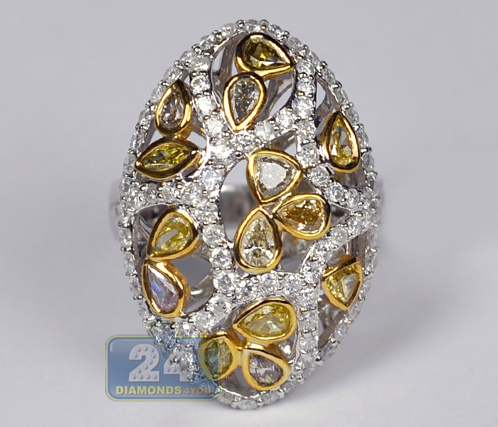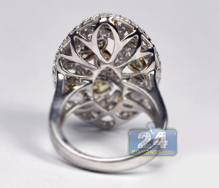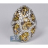 14K White Gold 3.33 ct Fancy Yellow Diamond Womens Dome Ring