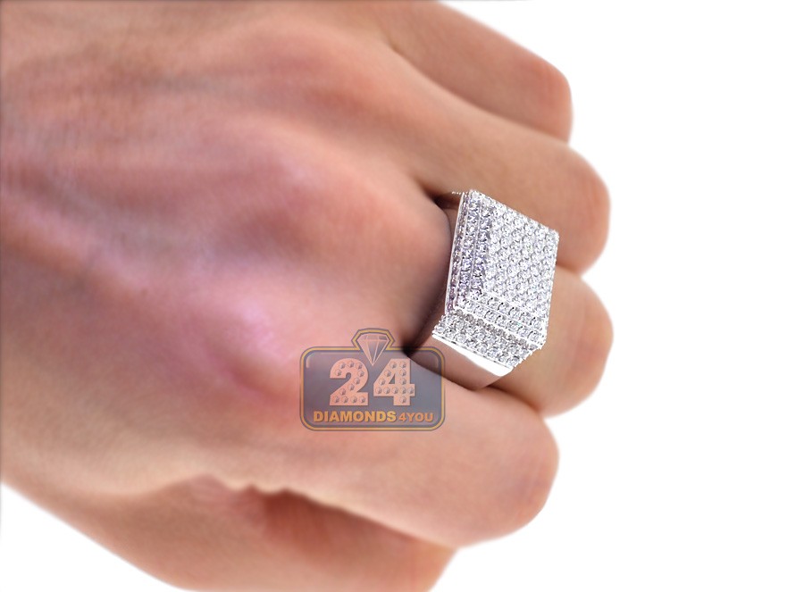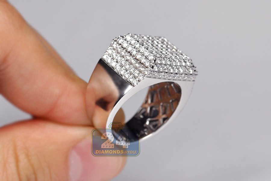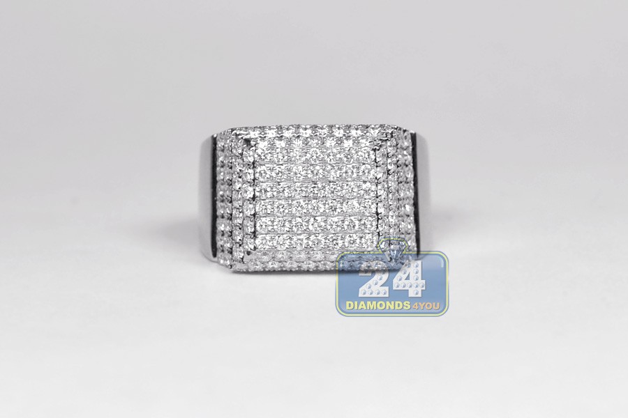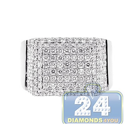 14K White Gold 3.37 ct Diamond Step Mens Signet Ring