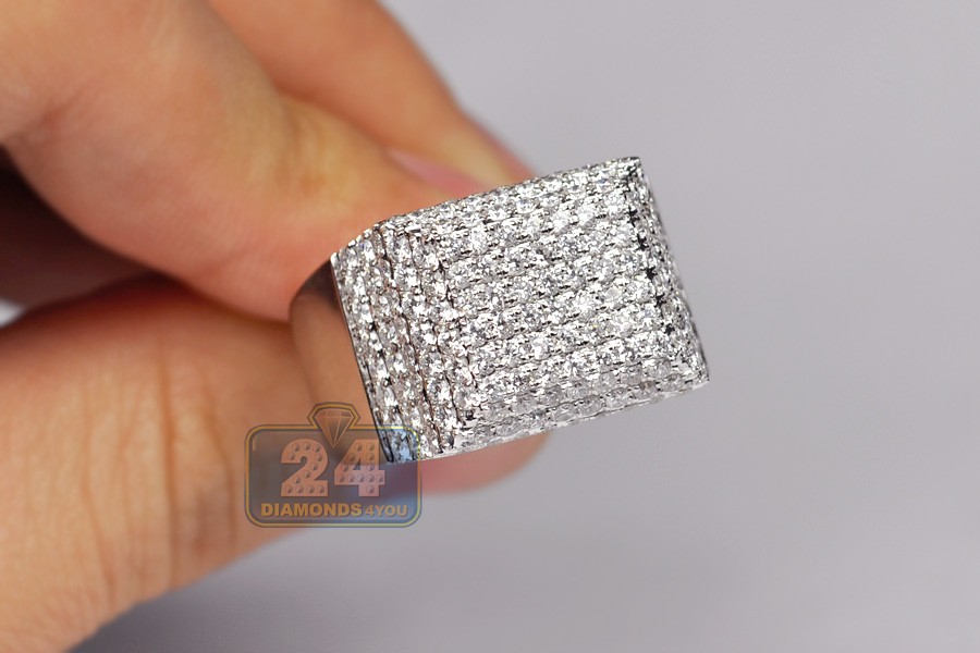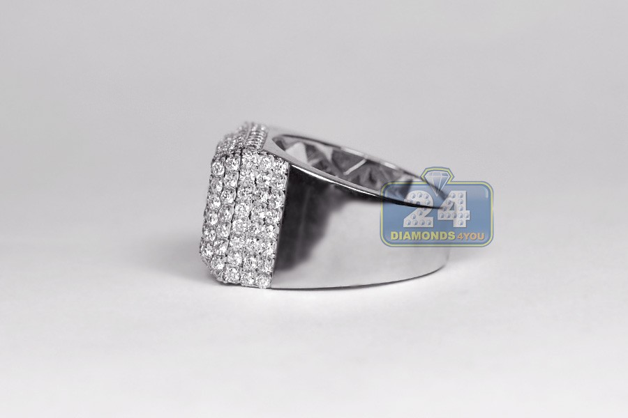 Invest in your jewelry collection with this classic design! Our stunning ring is expertly handcrafted in cool 14k white gold, has highly polished finish, and iced out with 164 pieces of eye clean diamonds weighting 3.37 carats. Impress yourself and everyone around with such a handsome diamond ring!