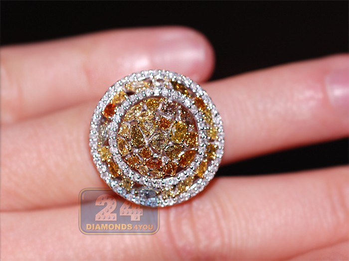 14K White Gold 3.42 ct Fancy Diamond Womens Round Ring