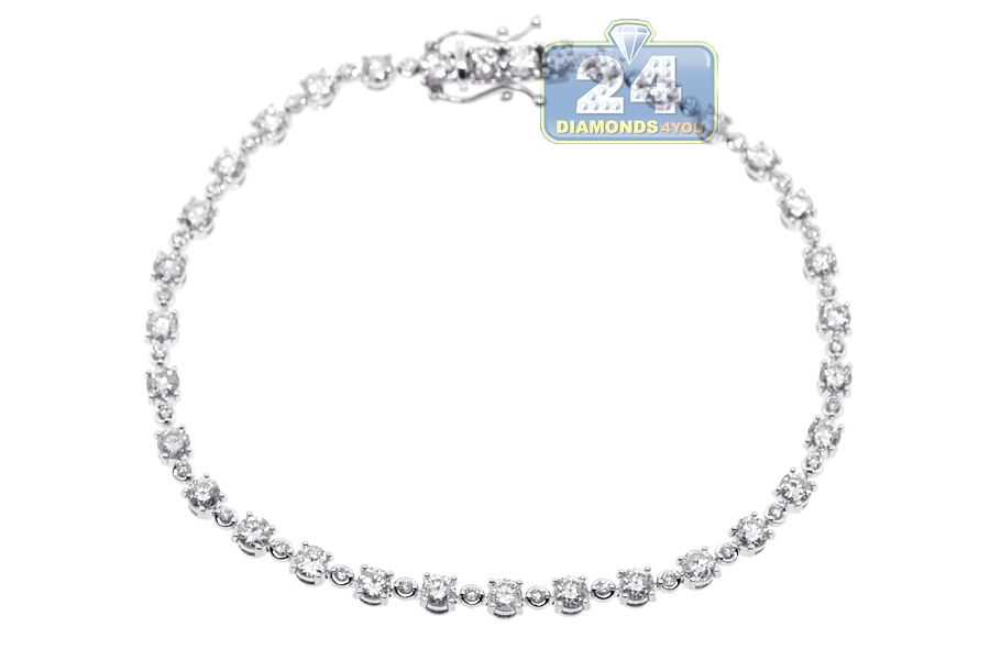 14K White Gold 3.43 ct Diamond Womens Tennis Bracelet 7 Inches