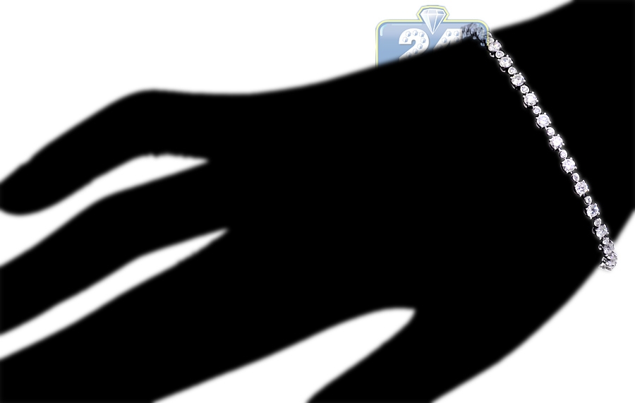 Dress her wrist in elegant beauty with this diamond tennis bracelet! It's expertly handmade of cool 14k white gold, and hihly polished for shiny finish. The piece is encrusted with 3.43 carats of icy white round brilliant-cut real diamonds. Our women's diamond bracelet measures 7 inches in length and 3 mm in width. This diamond tennis wrist bracelet is perfect for the lady who appreciates glamour and sophistication!