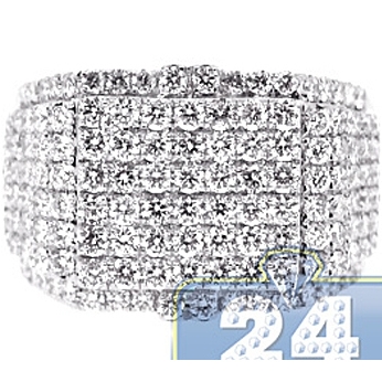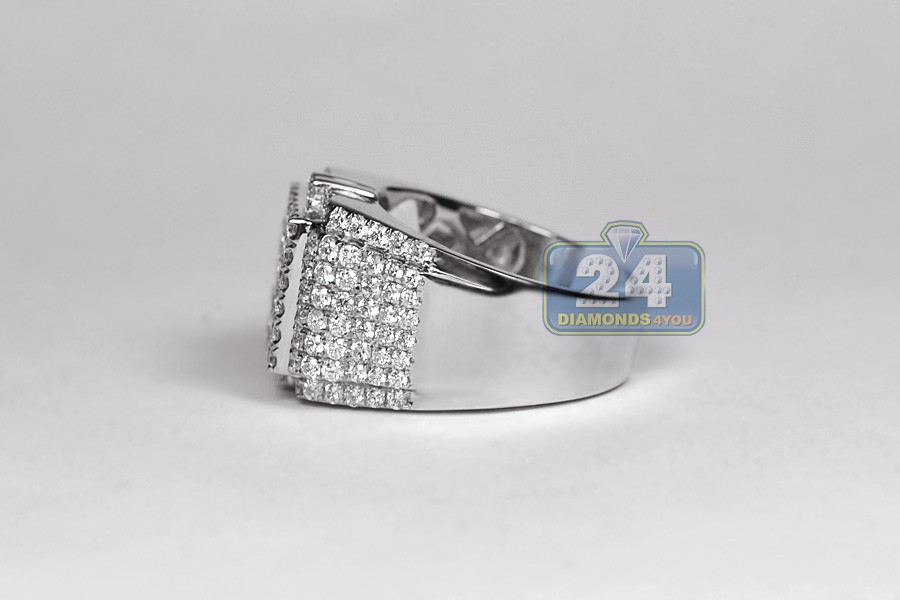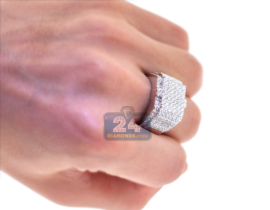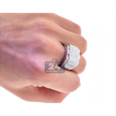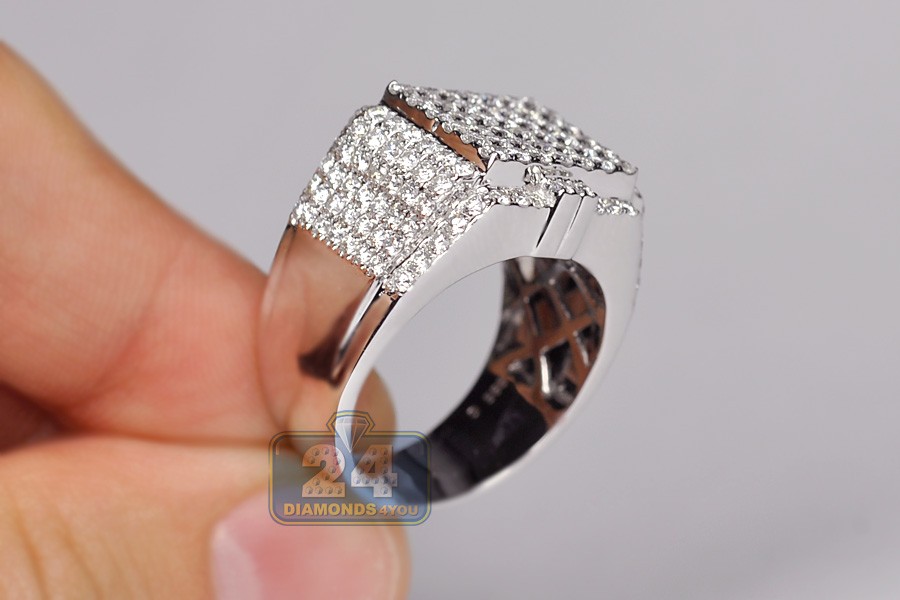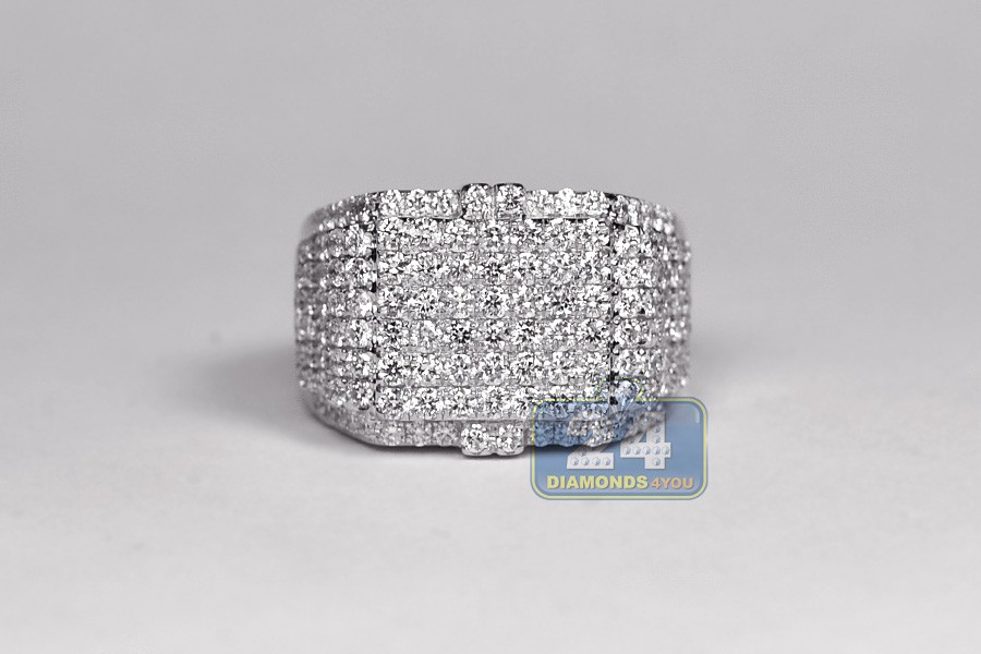 14K White Gold 3.44 ct Round Cut Diamond Mens Signet Ring