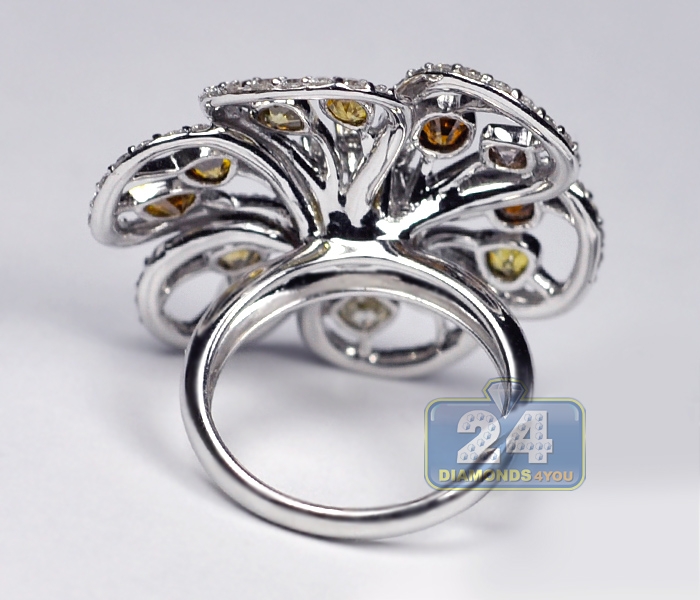14K White Gold 3.48 ct Fancy Diamond Womens Flower Ring