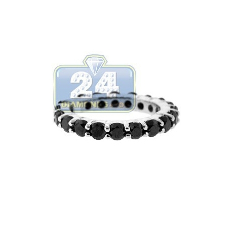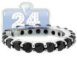 14K White Gold 3.49 ct All Way Black Diamond Womens Eternity Ring