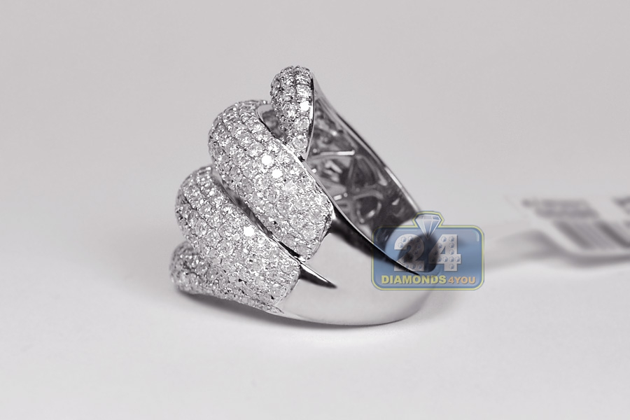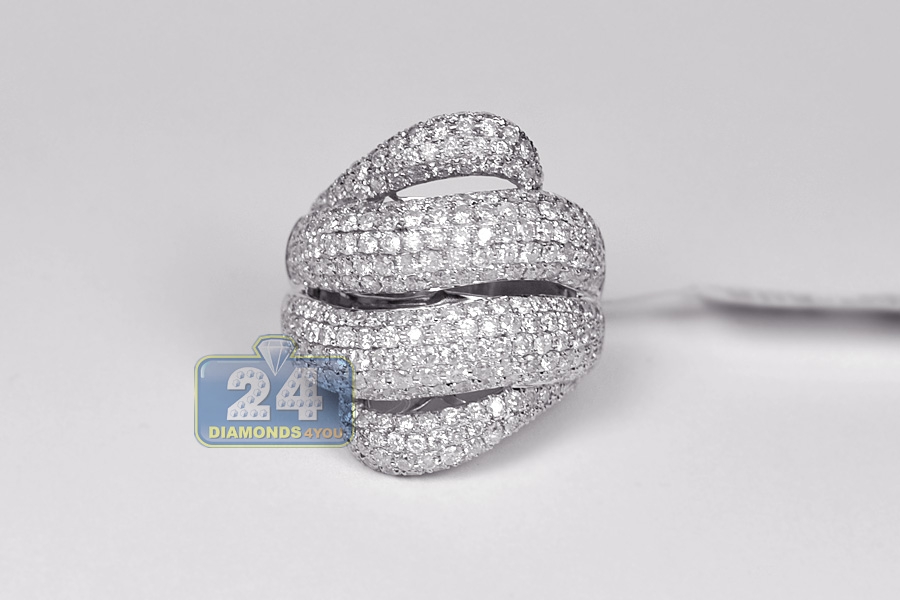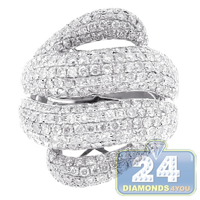 14K White Gold 3.50 ct Diamond Womens Wave Shape Ring