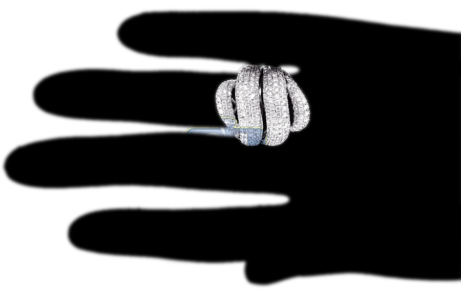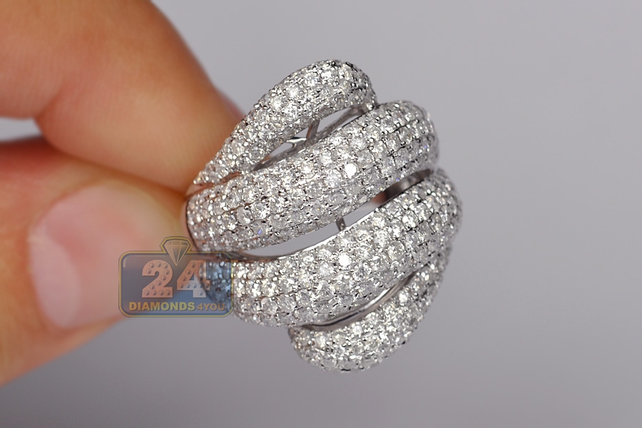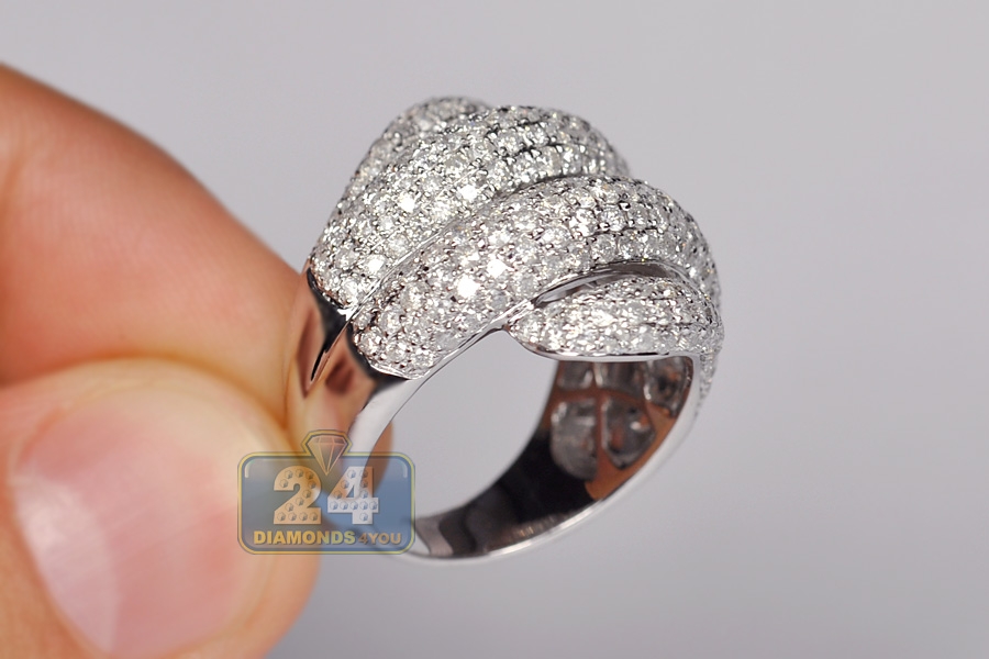 Gorgeously inspired by ocean, our oversized women's band features a wave shaped design! The band is masterly crafted in cool 14k white gold, finished with shiny polish, and skillfully accented with genuine round cut diamonds totaling 3.50 carat. All these stones are sparkling and eye clean, with SI1-SI2 clarity and G-H color, hand picked for size and quality match. What a bold expression of glamorous style!