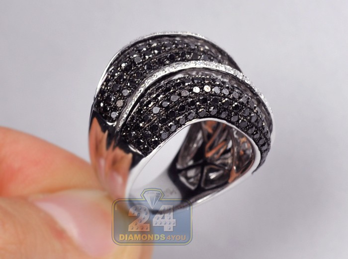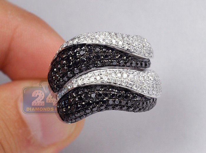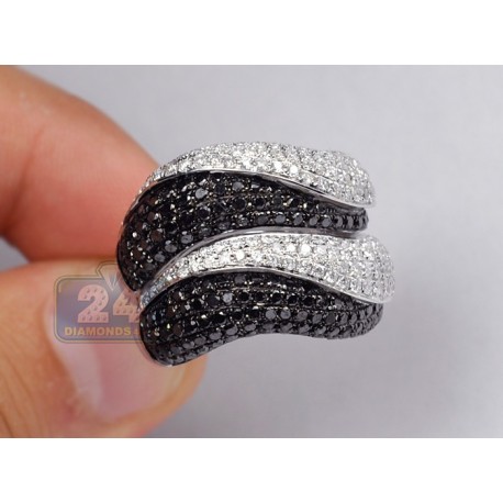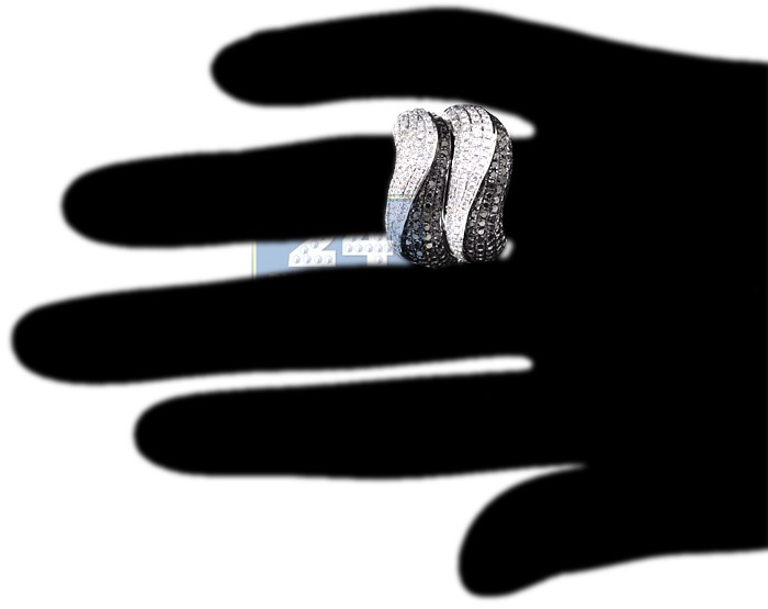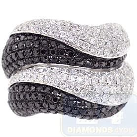 14K Gold 3.54 ct Black White Diamond Womens Wave Ring