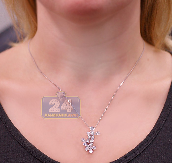 14K White Gold 3.63 ct Marquise Diamond Womens Flower Pendant