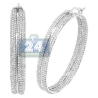 14K White Gold 3.64 ct Diamond Pave Round Hoop Earrings 2 Inch