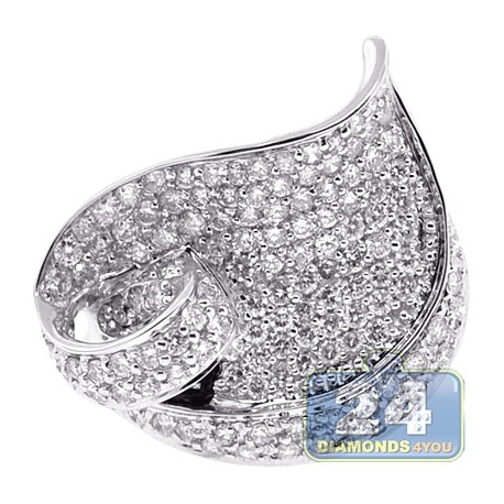 14K White Gold 3.64 ct Diamond Womens Leaf Ring
