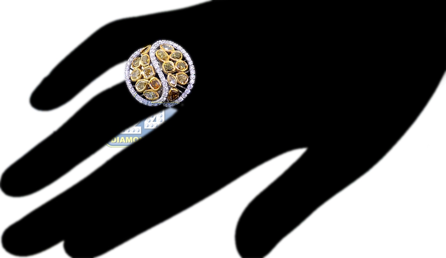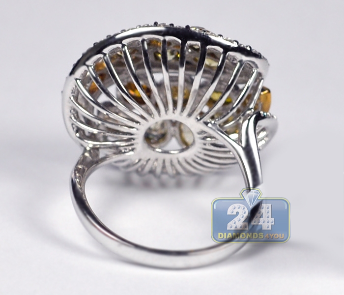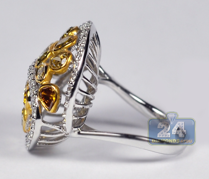 Make a gorgeous and unique statement with this fancy diamond cocktail ring! Lustrous 14k white gold has been masterfully handcrafted into one of a kind design that features natural multi-shaped and multi-colored as well as round cut icy white diamonds. Impressive combination of colors, shapes, materials and design idea! She will love the fashionable elegance of this amazing ring!