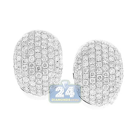 14K White Gold 3.80 ct Diamond Womens Small Hoop Earrings