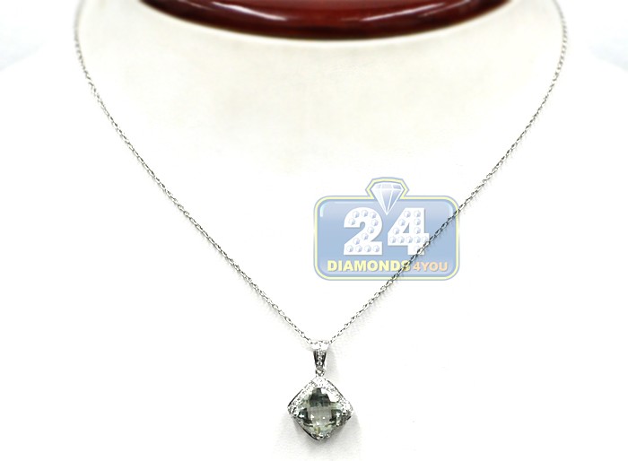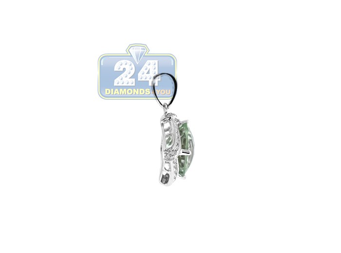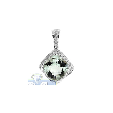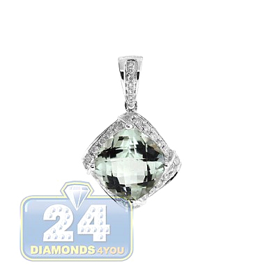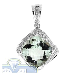 14K White Gold 3.85 ct Green Amethyst Diamond Womens Pendant