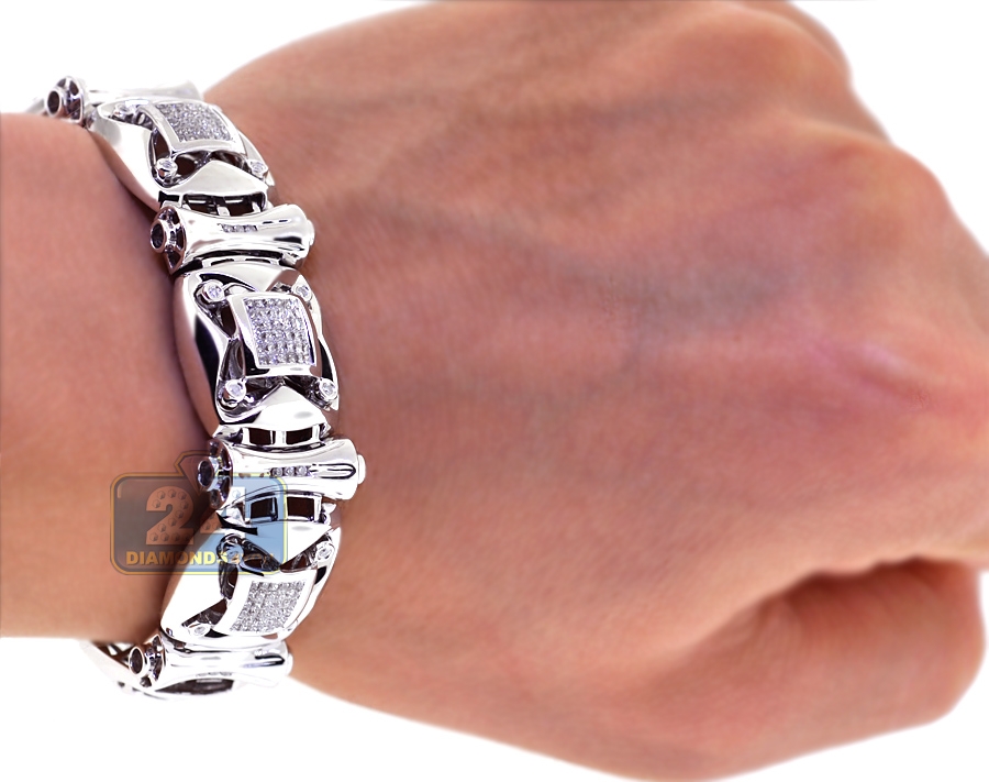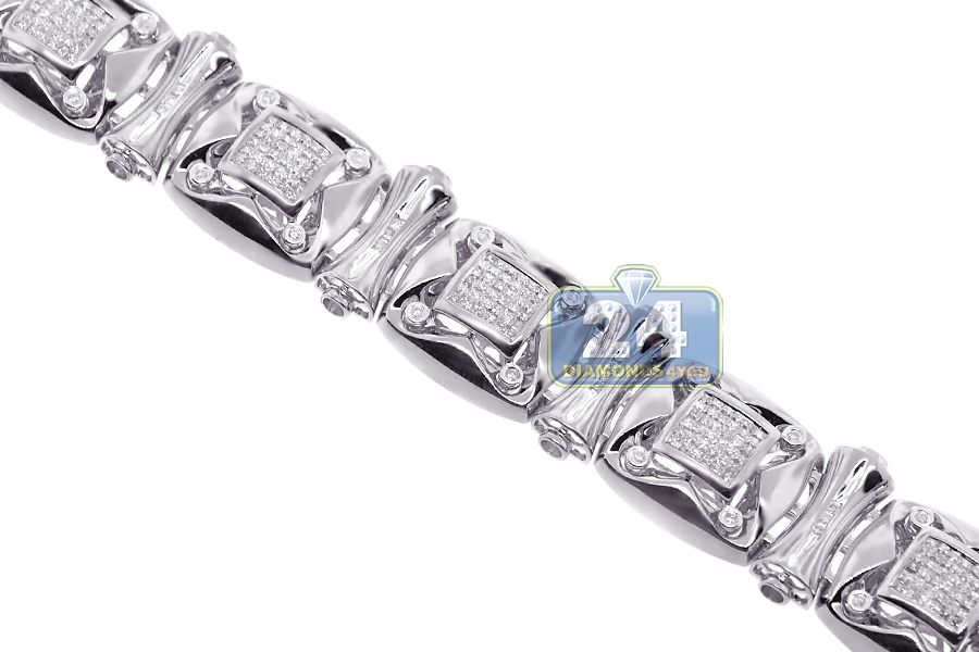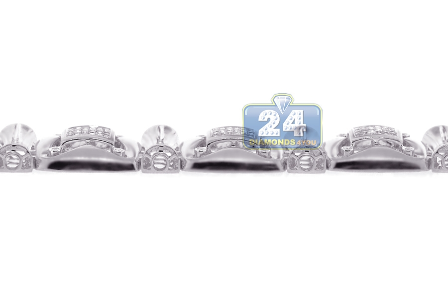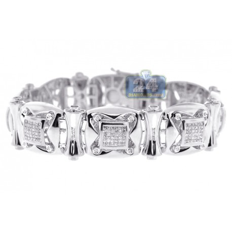 14K White Gold 4.02 ct Diamond Link Mens Bracelet 8 1/4 Inch