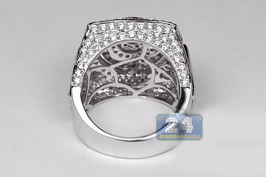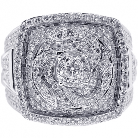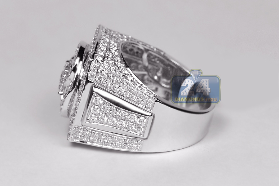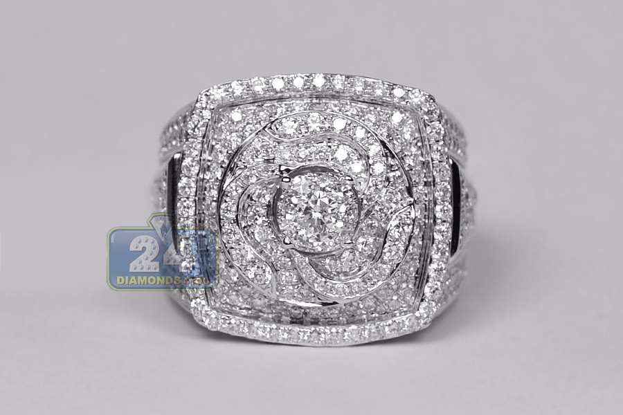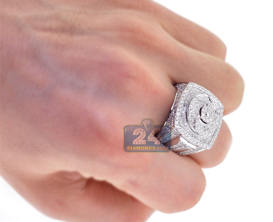 For the man who appreciates subtle sparkle and symbolic design, our diamond signet ring is a perfect choice! This diamond signet symbolizes power and energy! It is skillfully handmade of cool 14k white gold with shiny polish, and studded with icy white round brilliant-cut diamonds totaling 4.21 carats. Each stone features SI1-SI2 clarity with G-H color. The detailed certificate/appraisal included.